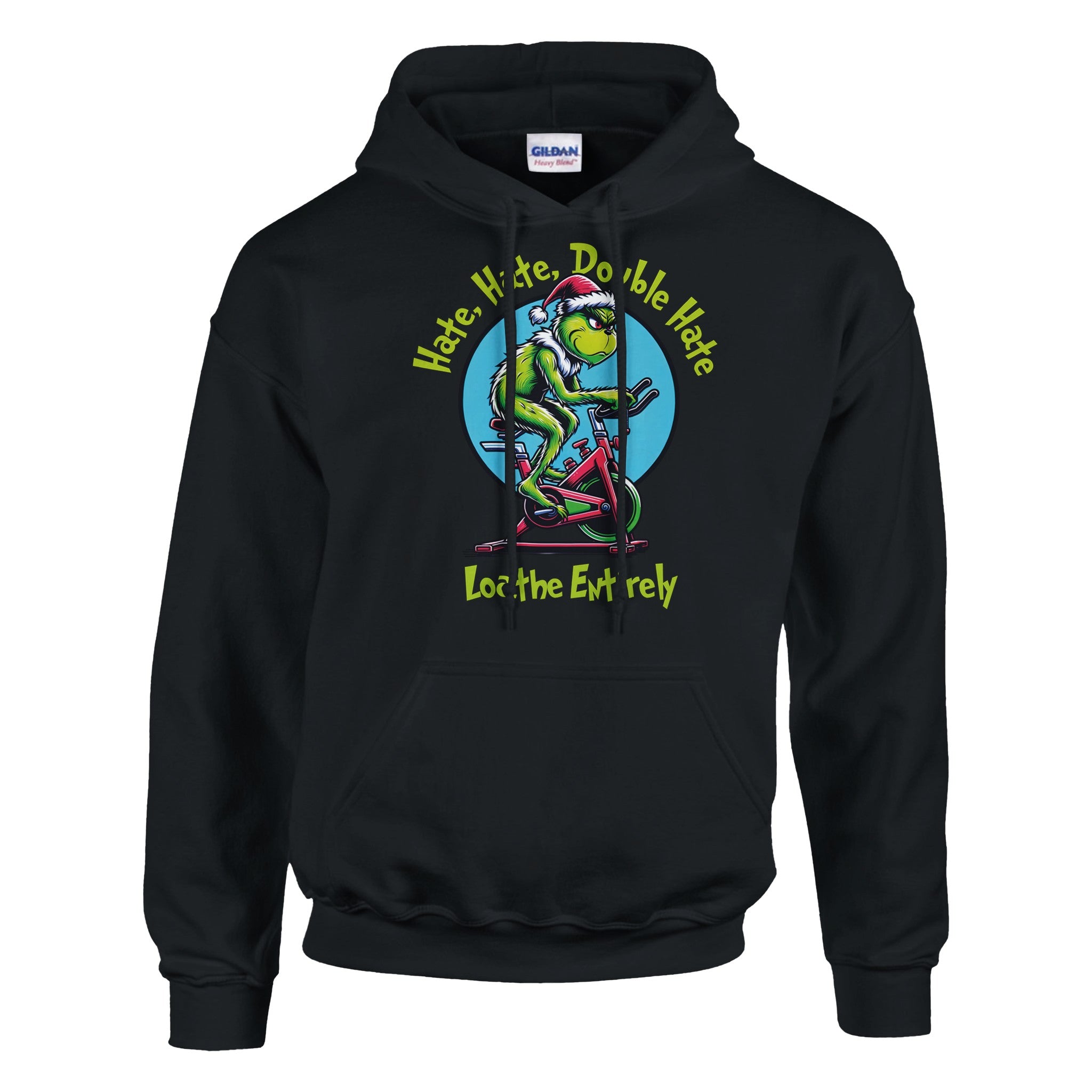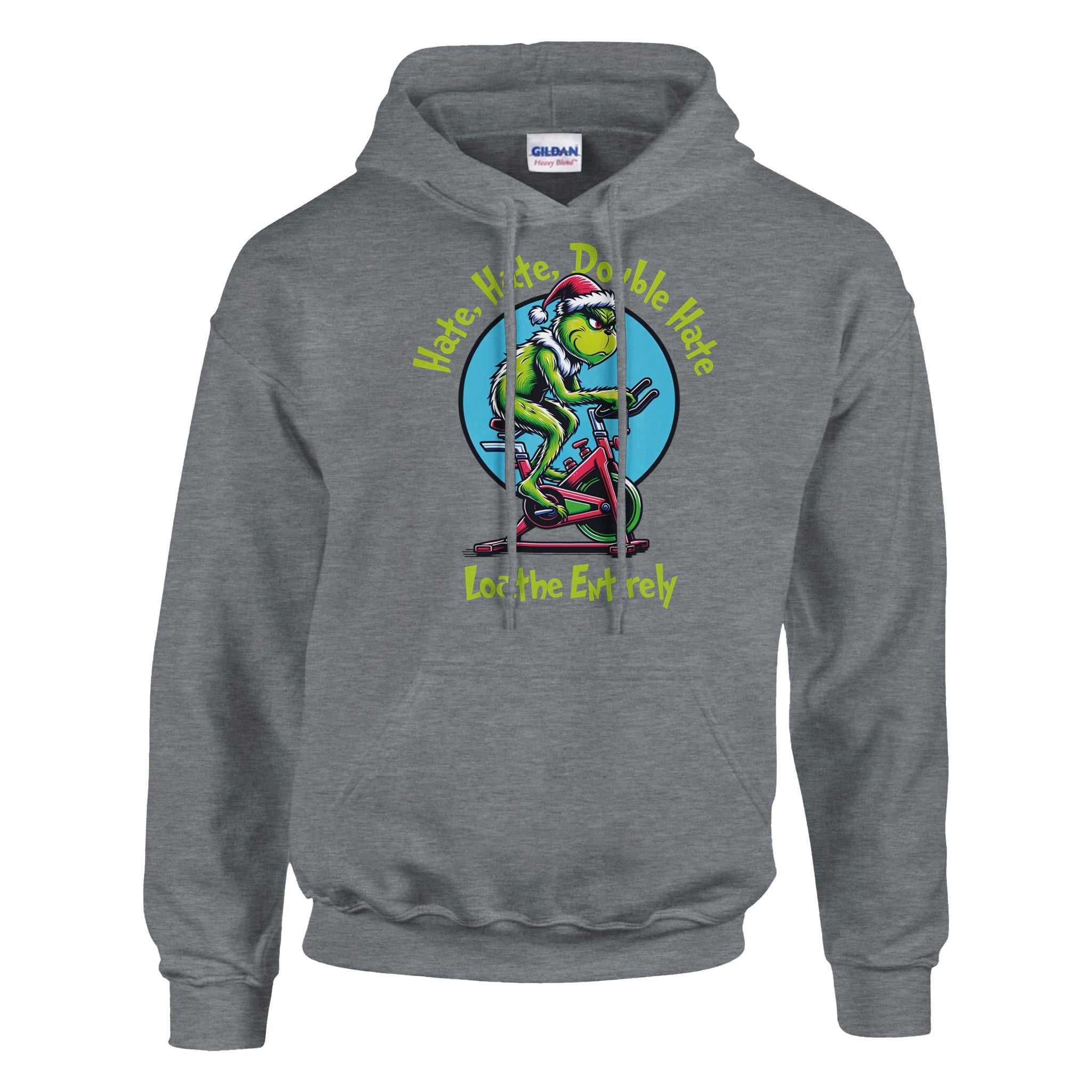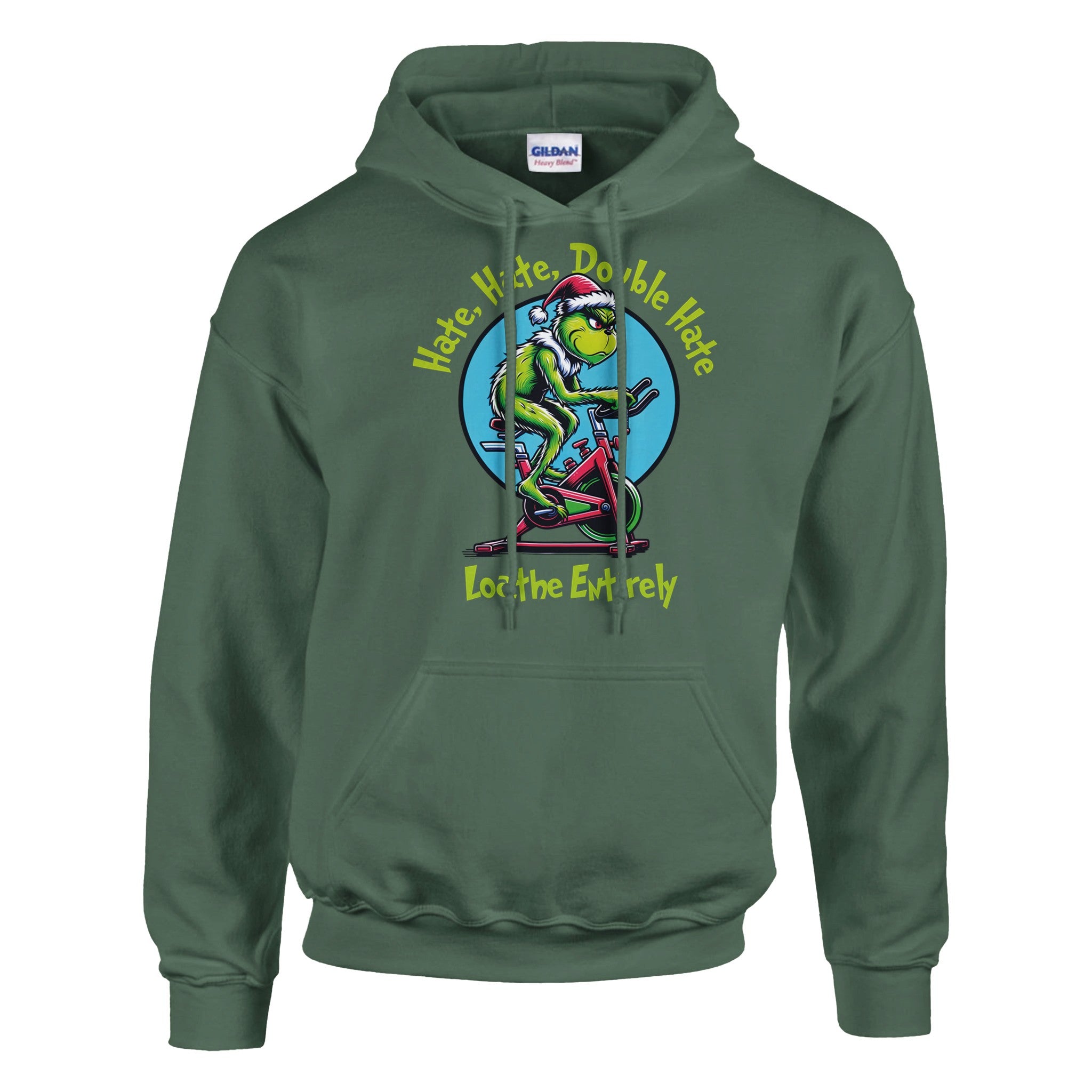 For everyone who despises cardio — this one’s for you. Our Hate Hate Double Hate Loathe Entirely tee features the Grinch himself mid–air bike meltdown, perfectly capturing the spirit of every lifter forced into endurance training. Designed in a vintage mid-century cartoon style, this holiday fitness shirt brings humor, rebellion, and relatable gym energy to your Christmas season.