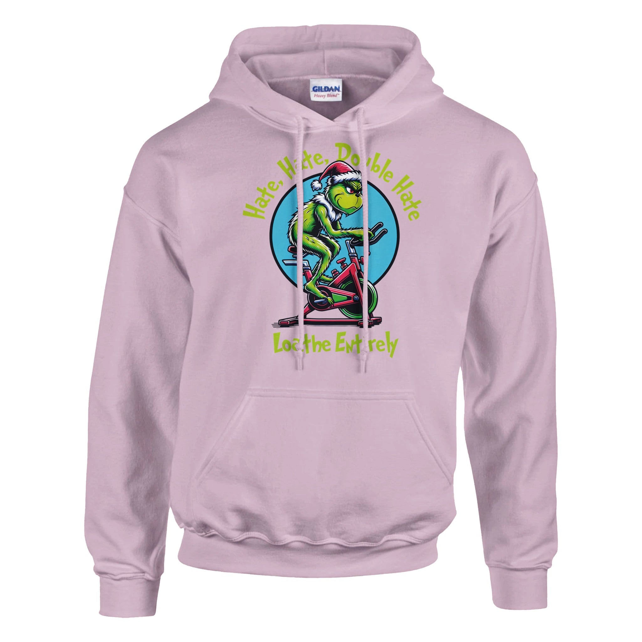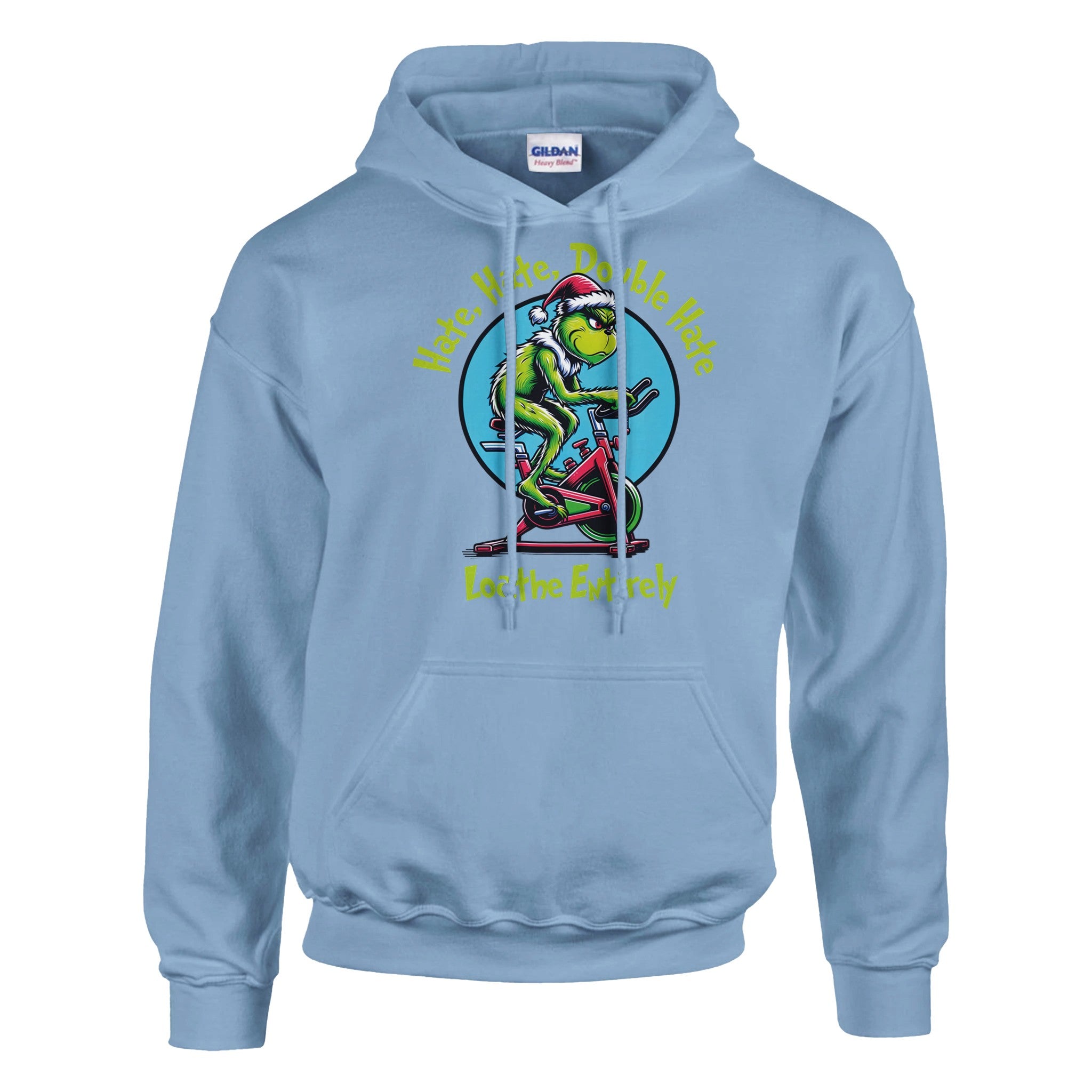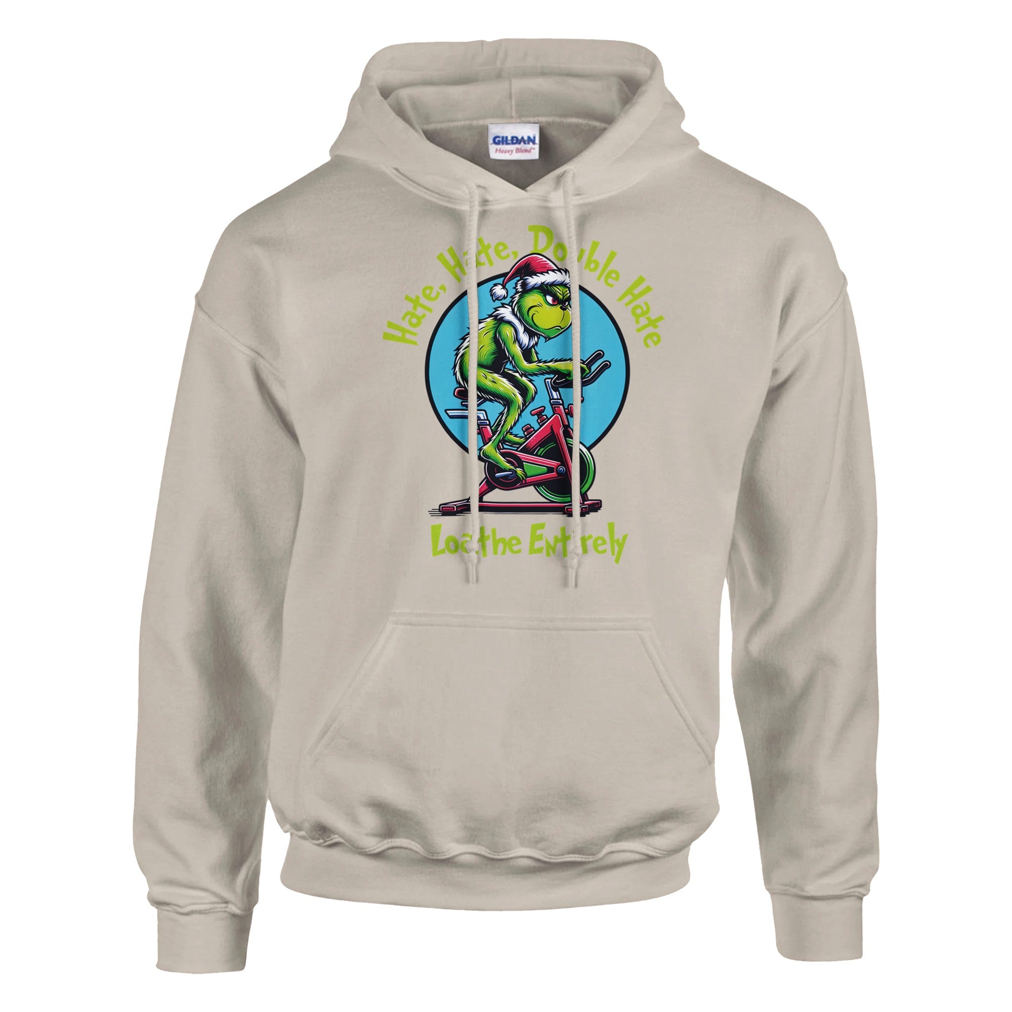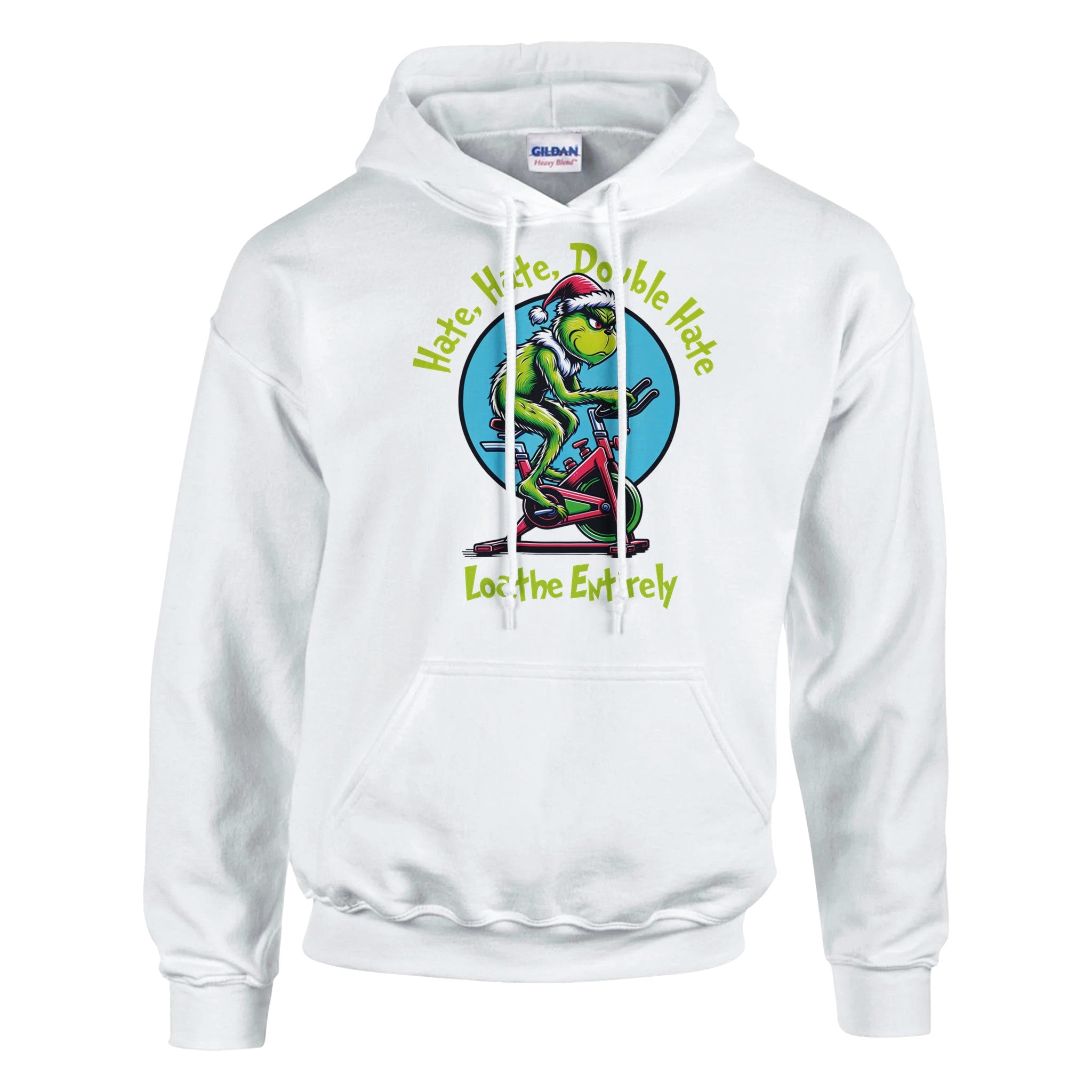 For everyone who despises cardio — this one’s for you. Our Hate Hate Double Hate Loathe Entirely tee features the Grinch himself mid–air bike meltdown, perfectly capturing the spirit of every lifter forced into endurance training. Designed in a vintage mid-century cartoon style, this holiday fitness shirt brings humor, rebellion, and relatable gym energy to your Christmas season.