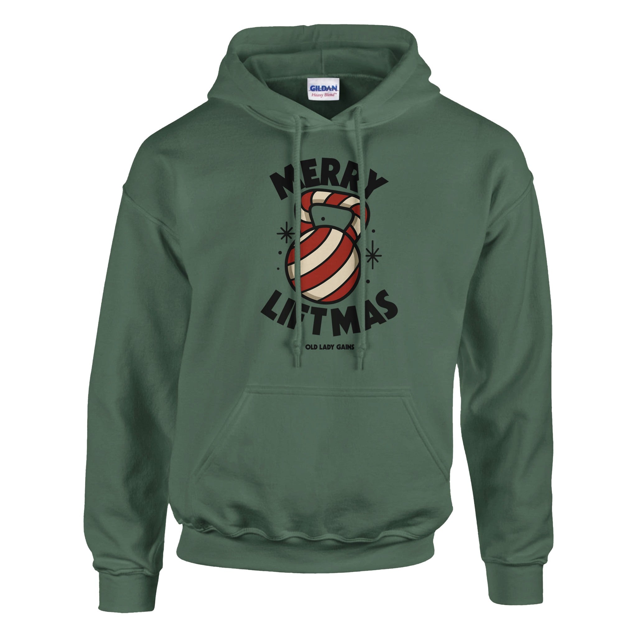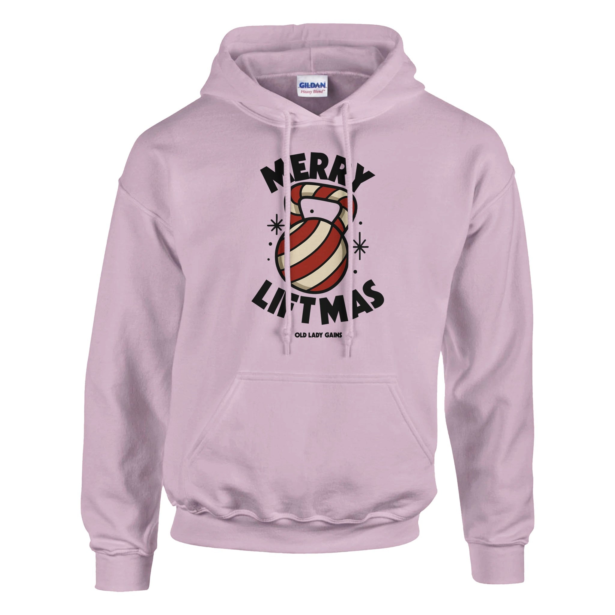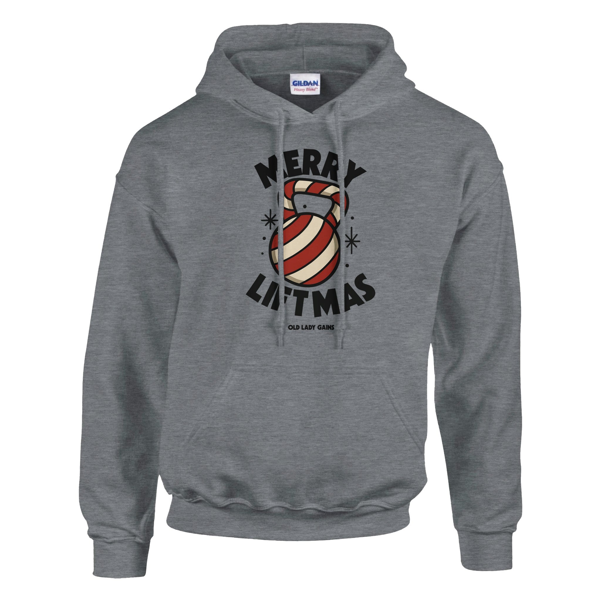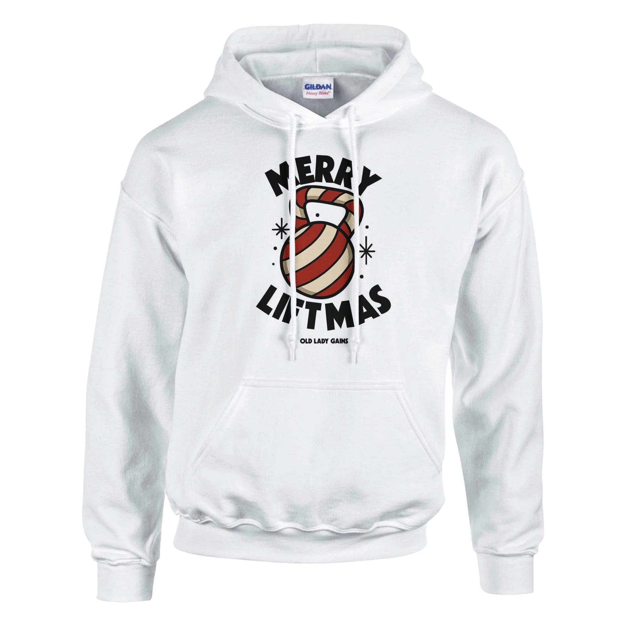 Celebrate gains and holiday cheer with our Merry Liftmas design — a vintage tattoo–style kettlebell wrapped in festive candy cane stripes. Bold, strong, and unapologetically merry, this shirt was made for women who trade cookie cutters for kettlebells and carols for PRs.