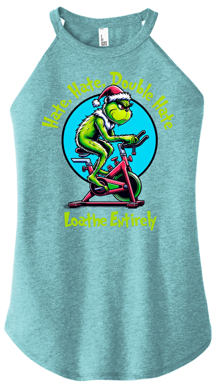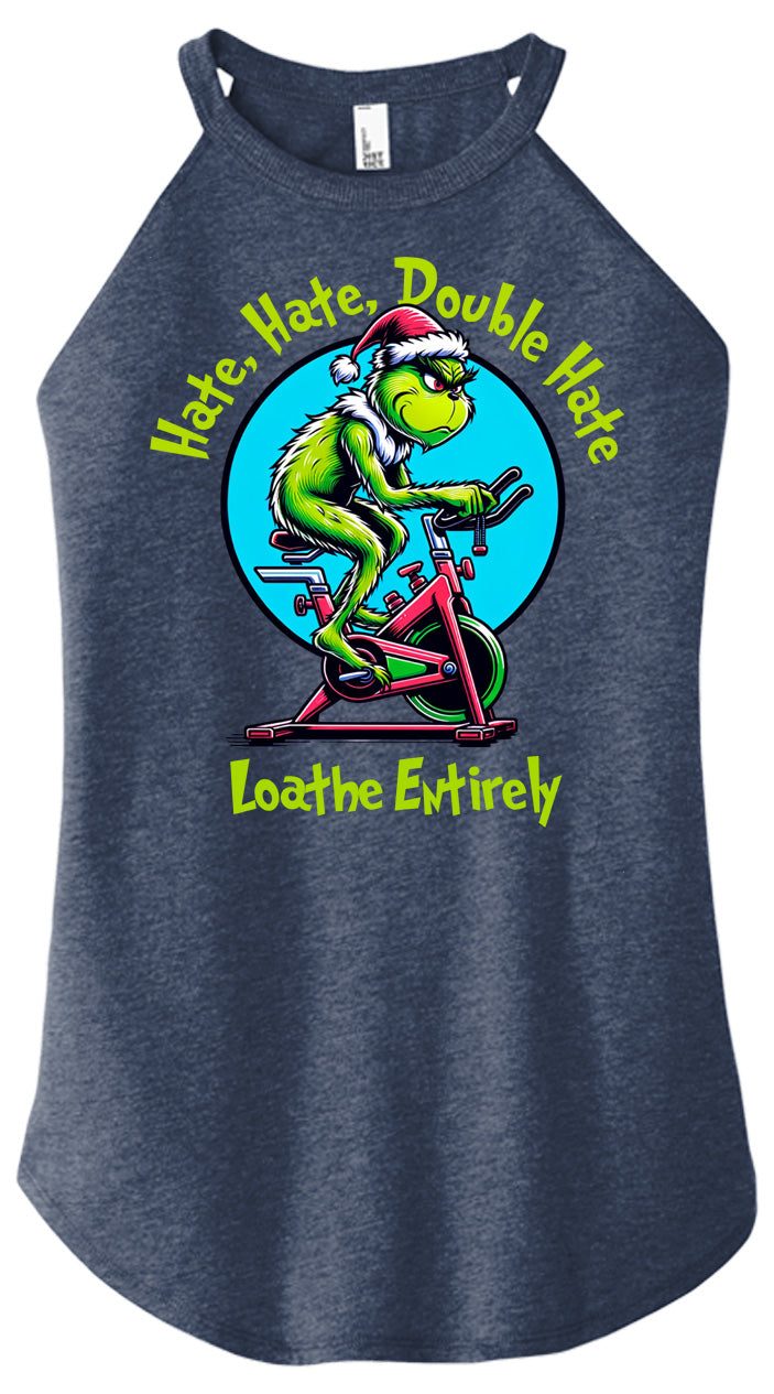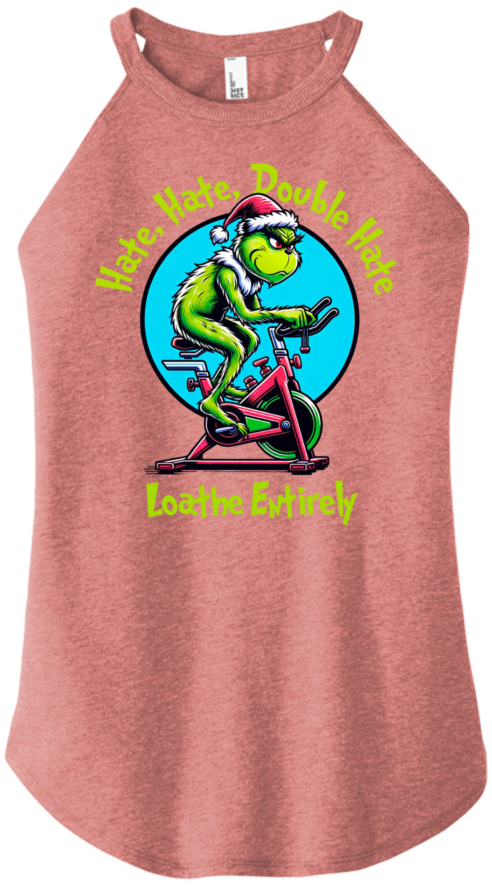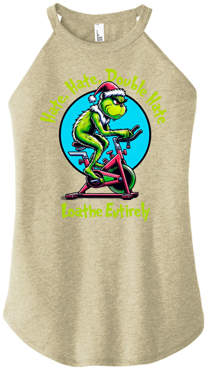 For everyone who despises cardio — this one’s for you. Our Hate Hate Double Hate Loathe Entirely tee features the Grinch himself mid–air bike meltdown, perfectly capturing the spirit of every lifter forced into endurance training. Designed in a vintage mid-century cartoon style, this holiday fitness shirt brings humor, rebellion, and relatable gym energy to your Christmas season.