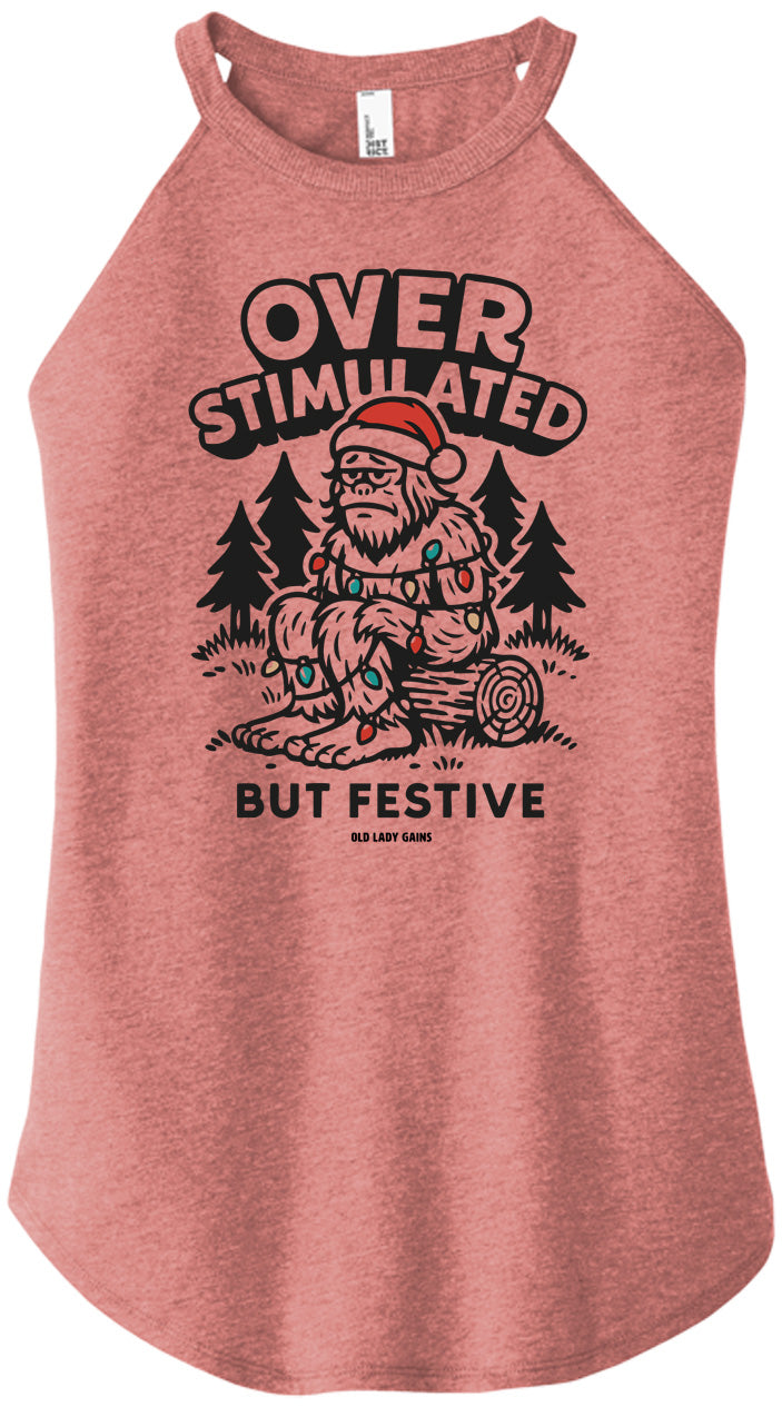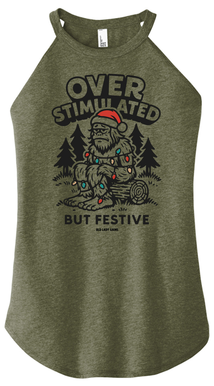Printed on our signature soft tri-blend halter tank (or classic tee), this limited-edition Old Lady Gains holiday drop captures the spirit of every overworked, overcaffeinated woman who’s just trying to survive December with a shred of dignity — and maybe a little sparkle.